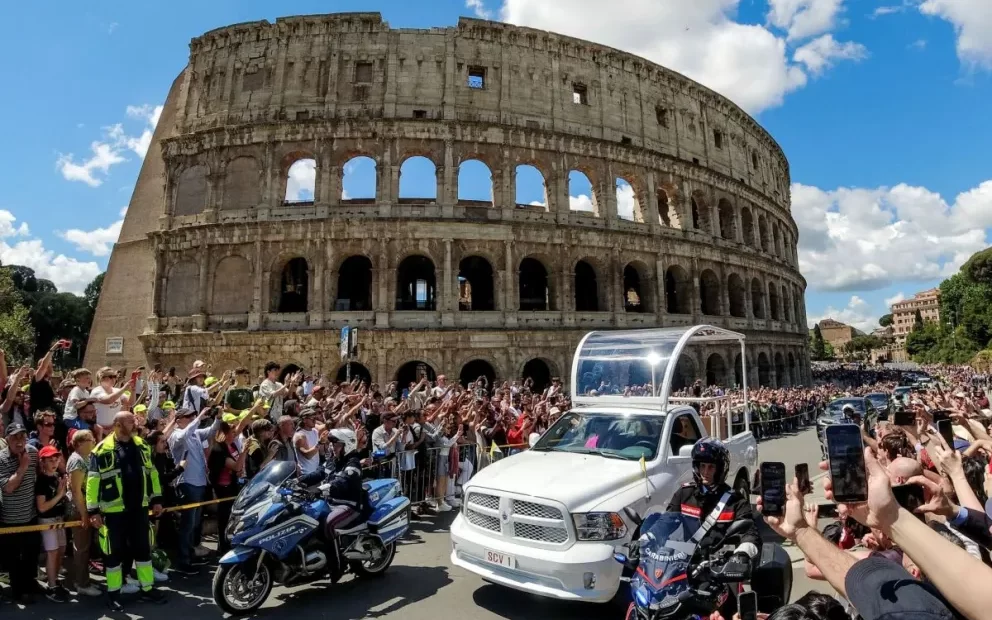 El trayecto, en el corazón de la Ciudad Eterna, evocó los antiguos desfiles triunfales romanos. Pero esta vez no se celebraba una conquista militar, sino la vida de un hombre que conquistó almas con su humildad, su ternura y su fe inquebrantable.