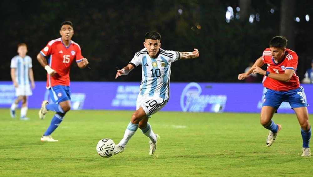 Con un “doblete” y una asistencia de Thiago Almada, la Selección Argentina Sub 23 doblegó 5-0 a su similar de Chile en su tercera presentación en el torneo preolímpico sudamericano, resultado que le aseguró la clasificación al cuadrangular final que definirá las dos únicas plazas disponibles para los Juegos Olímpicos de París de este año.