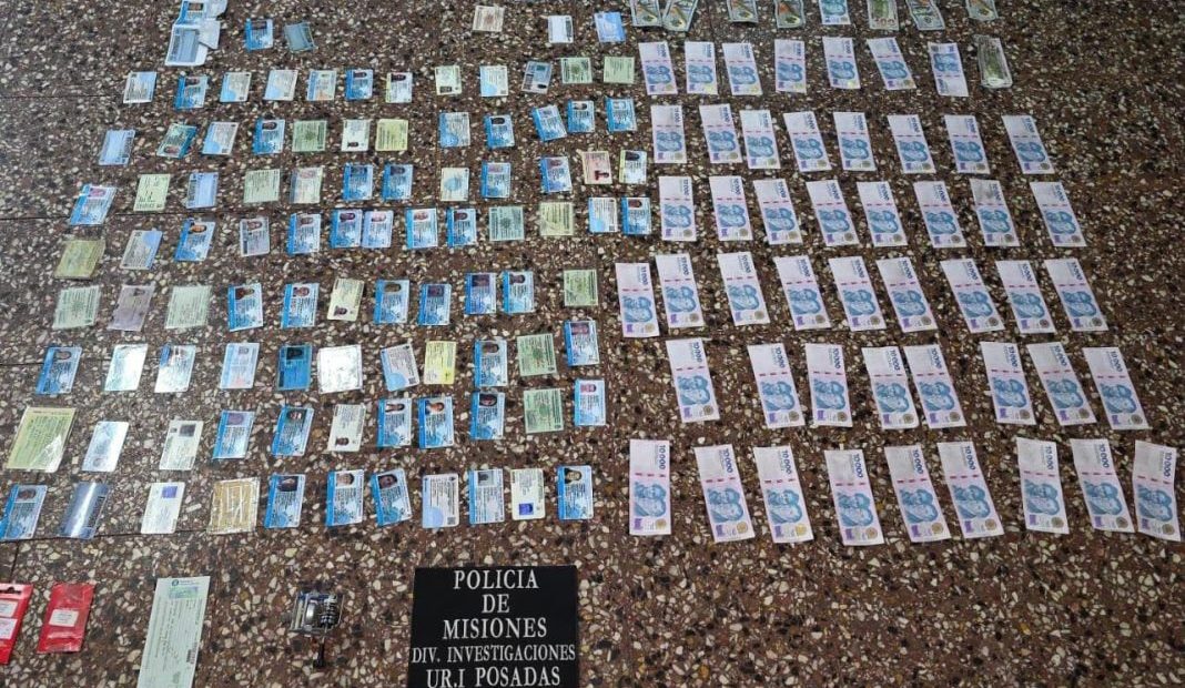 Durante tres allanamientos simultáneos, la Policía de Misiones secuestró billetes de pesos y dólares falsos, además de decenas de cédulas de vehículos, licencias de conducir, documentos y verificaciones técnicas, los cuales serían apócrifos. Un hombre de 67 años fue detenido y es investigado por presuntas maniobras de estafa y defraudación.