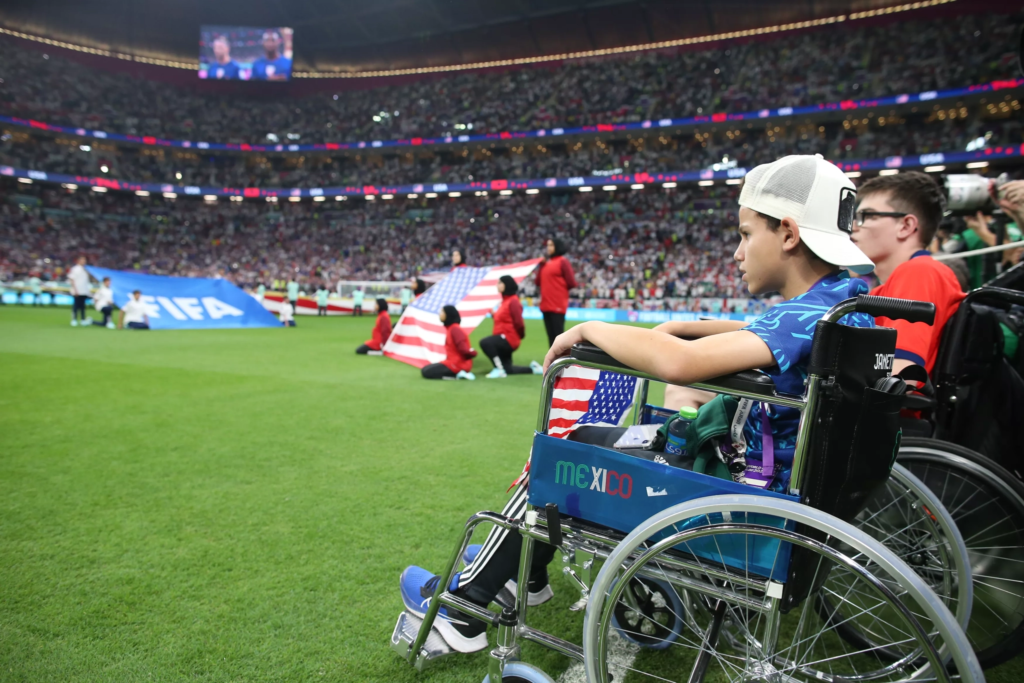 Alguien dijo una vez "Bien hecho es mejor que bien dicho". En una oportunidad única en la vida, la FIFA ha introducido en Catar 2022 una nueva iniciativa. En cada uno de los 64 partidos, se ha ofrecido a los aficionados con discapacidad una experiencia exclusiva durante la ceremonia previa al encuentro. Se selecciona al azar a dos usuarios de silla de ruedas presentes en el estadio y titulares de una entrada de accesibilidad para tomar parte y también para estar en el túnel de vestuarios, así como junto a la cancha, muy cerca de sus ídolos. En los últimos partidos de la fase de grupos, su participación ha sido incluso más especial, dado que han podido participar en la propia alineación, durante los himnos, justo delante del cuerpo arbitral. En el emocionante duelo del Grupo E entre Japón y España, celebrado el 1º de diciembre en el Estadio Internacional Khalifa, José Ramos Castillo de Barcelona y Mochida Haruki de Tokio estuvieron al lado de sus héroes. Tras los himnos, ambos se abrazaron en el túnel de vestuarios, sonriendo de oreja a oreja. "Ha sido un momento muy especial. Increíble", afirmó el español. "Estoy muy contento esta noche". Un sentimiento también compartido por Haruki, que lucía la camiseta con el dorsal número 11 de su jugador favorito, Takefusa Kubo.