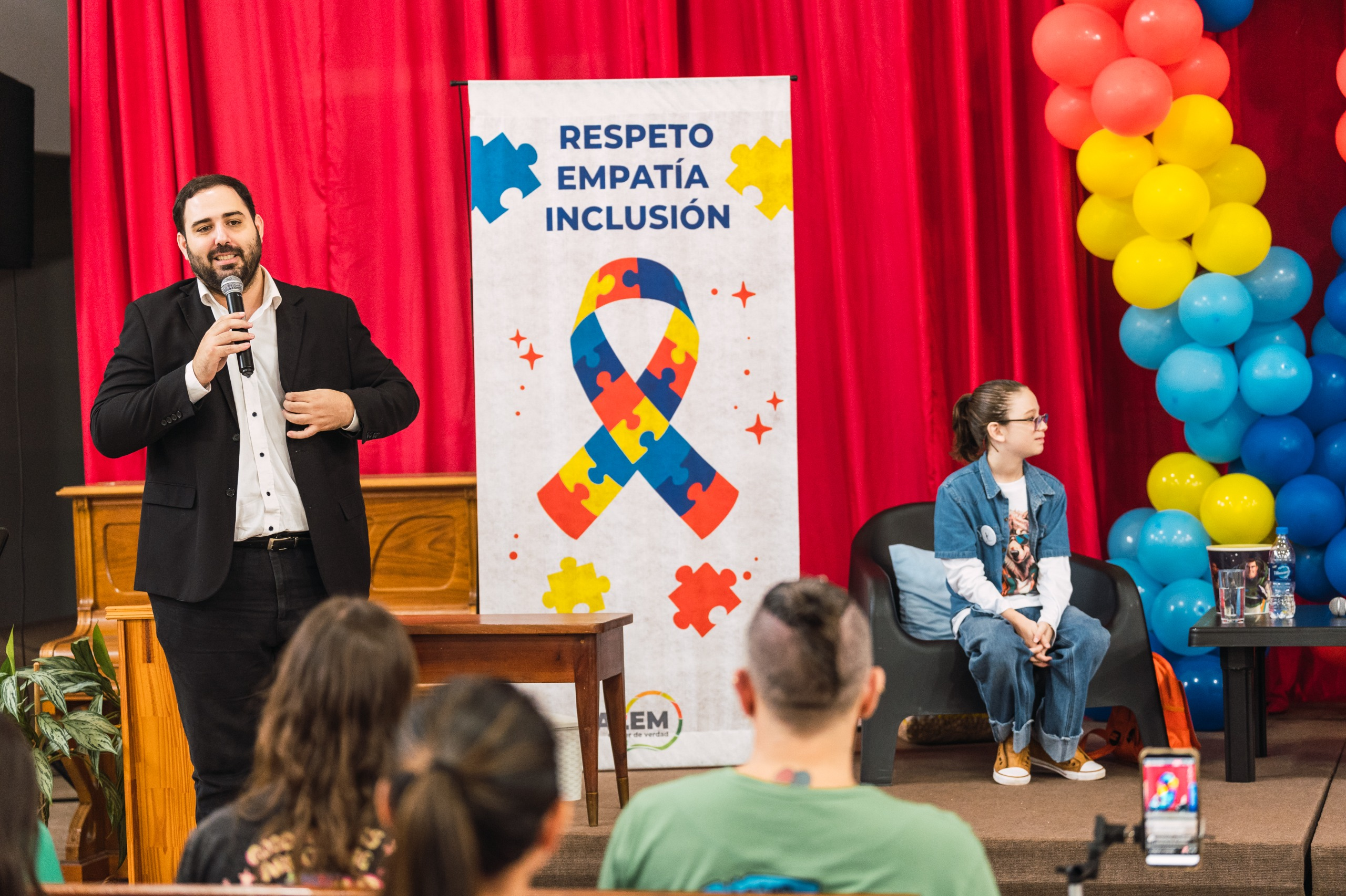 El punto culminante de la visita de Ian fue el miércoles por la tarde con su participación destacada en el evento "Hablemos de Autismo", realizado en el SUM de la Iglesia Zion de la ciudad de Alem, acompañado por Marlene, su madre.