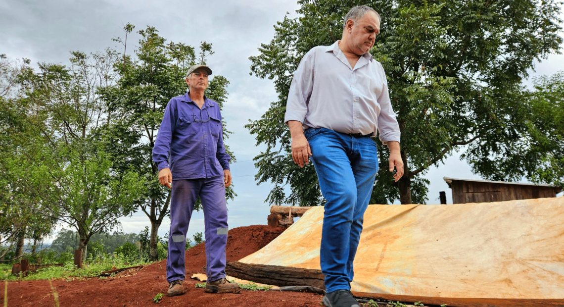 La visita estuvo enfocada en una chacra afectada junto a referentes de la municipalidad de Ruiz de Montoya y el equipo del IMaC, aproximando semillas y herramientas para que puedan recuperar sus invernaderos y seguir trabajando la tierra.