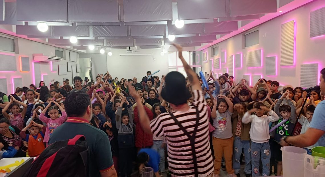 Las condiciones climáticas del momento condicionaron el desarrollo pleno de todas las propuestas previstas para esta edición de “Infancia Feliz”, pero no impidieron que centenares de familias pudieran disfrutar el divertido show brindado por “Gurises Felices” del Instituto Provincial de Lotería y Casinos (IPLyC), junto a otras actividades que animaron a niños y adultos.