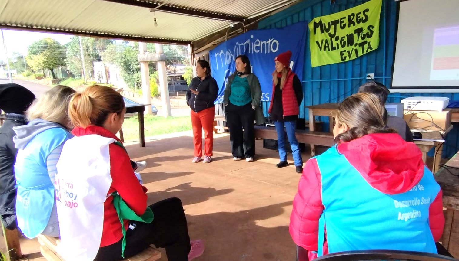 En el encuentro desarrollado en el parador del barrio Lapachitos, participaron el dirigente provincial, Martín Sereno; la referente de Género del Movimiento Evita, Florencia Fraga, trabajadora social e integrante de las Promotoras Micaela García; y las coordinadoras de diversos barrios posadeños, mediadoras y promotoras del Registro tanto del Evita y del Movimiento de Trabajadores Excluidos (MTE) y vecinos y vecinas de la zona interesadas en la jornada.