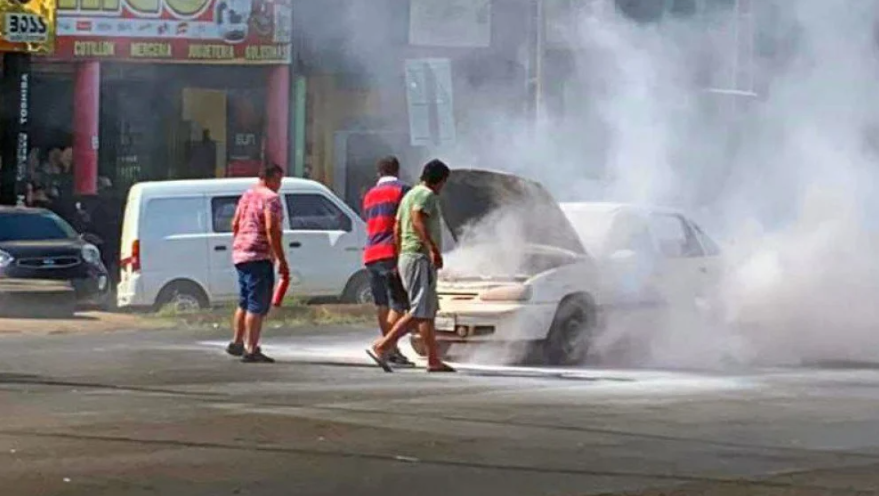 Otro auto con principio de incendio en las filas para cruzar el puente