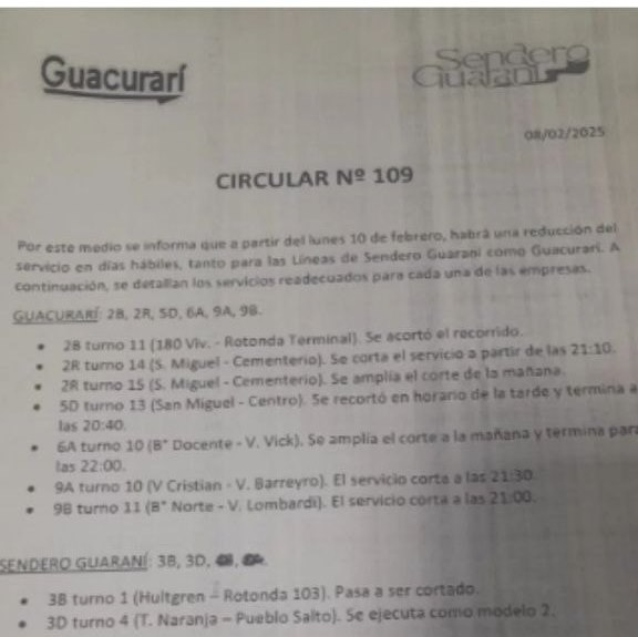 Redujeron frecuencias de colectivos en Oberá y la municipalidad prepara actas a Guacurarí
