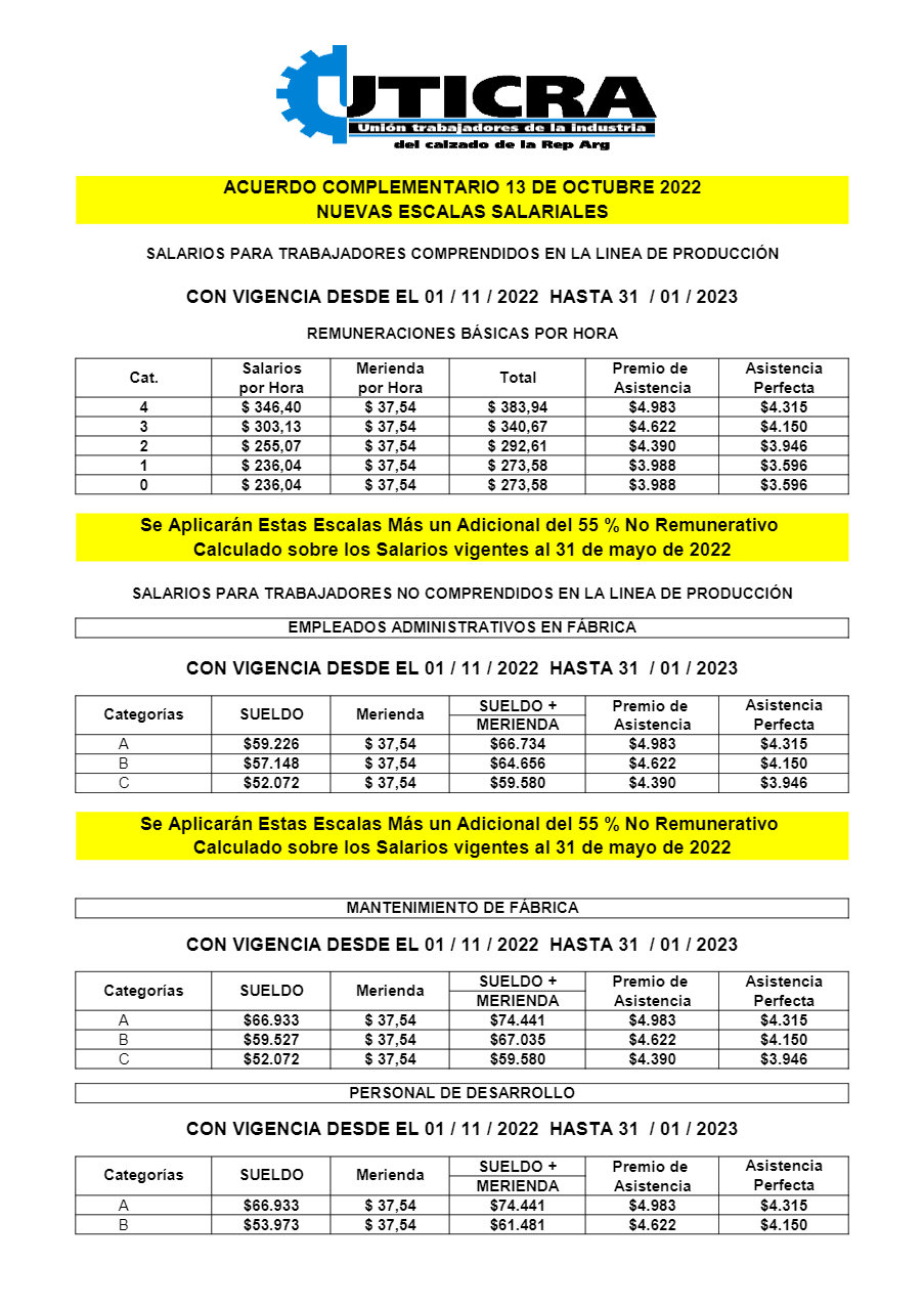 Luego de intensas discusiones la Unión de Trabajadores del Calzado (UTICRA); acordó un incremento salarial del 113,05% para todos los trabajadores de la actividad.