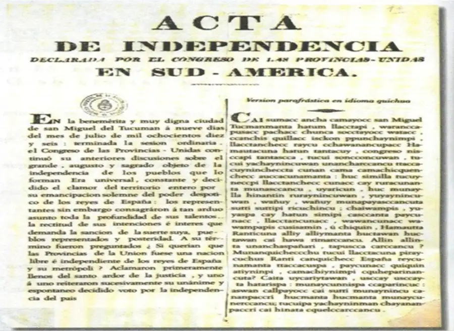 La proclama se publicó en español, como así también en quechua y aymará con el fin de incorporar al proceso a los pueblos originarios y que todos supieran lo que pasó el 9 de julio de 1816.