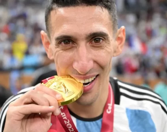 “Gracias eternas, ahora soy un hincha más. Voy estar en cada Copa América y en cada Mundial con mi familia”, aseguró Di María, tras recibir una placa por parte del presidente de la AFA Claudio Tapia y una réplica de la Copa América, la cuál ganó dos veces en 2021 y 2024.
