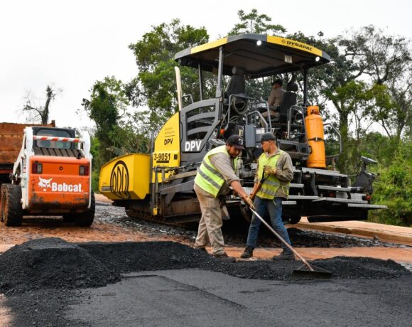 En tanto en Garuhapé, la DPV tiene en marcha una serie de trabajos que, en esta etapa, totalizarán unos 700 metros lineales de nuevo asfalto beneficiando a vecinos de las calles España, Virgen de Fátima y Beato Roque González.