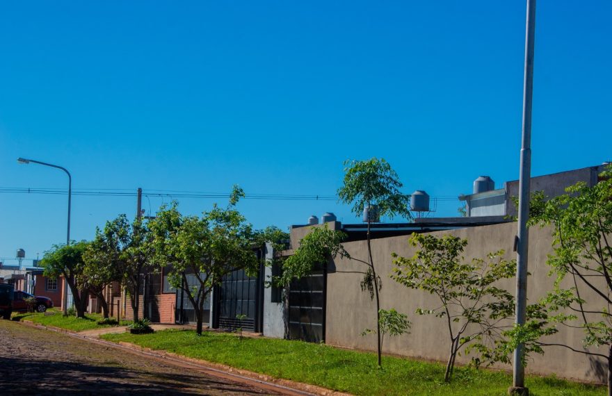 A poco más de una década de su creación, la urbanización Itaembé Guazú, en la ciudad de Posadas, muestra un mapa mixturado de edificaciones con importantes espacios verdes. Esta incorporación vegetal fue diseñada por el Instituto Provincial de Desarrollo Habitacional (IPRODHA), que, más allá de la construcción de viviendas y equipamientos urbanos, proyectó crear un "hábitat saludable" a través de una forestación masiva y estratégica a corto, mediano y largo plazo._