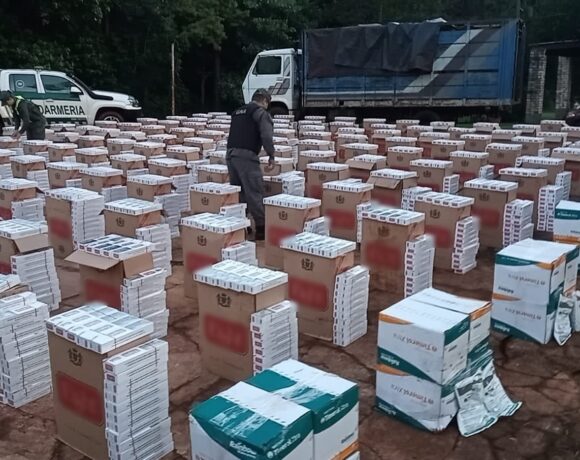 Cruzaron un camión para transporte de ganado que llevaba 73.000 atados de cigarrillos Ocurrió en Wanda, eludieron el control de la Fuerza pero fueron alcanzados por los uniformados. Dentro del semirremolque tenían 146 cajas con paquetes de cigarrillos y 300 kilos de insecticida. Hoy, en horas de la madrugada, los efectivos de la Sección “Esperanza” dependiente del Escuadrón 10 “Eldorado” de la Gendarmería Nacional desplegados sobre la Ruta Provincial N° 19 de la...Leer más