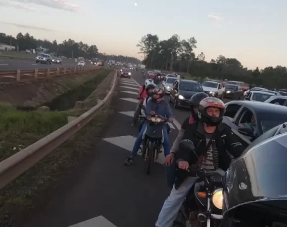 Docentes cortan el acceso al puente San Roque González En estos instantes, docentes del Frente de Trabajadores de la Educación en Lucha (FTEL) se encuentran interrumpiendo el acceso al Puente San Roque González de Santa Cruz para expresar su malestar con el gobierno provincial por el acuerdo salarial con gremios que integran la mesa de dialogo docente. “Por ahora el corte acaba de comenzar y seguro va a transcurrir...Leer más