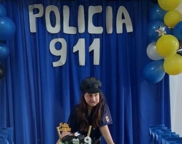 Una nena festejó su cumpleaños disfrazada de policía y efectivos de seguridad fueron a saludarla de sorpresa En las últimas horas se viralizó el video de una nena de la ciudad santafecina de San Cristóbal que celebró su cumpleaños con una temática particular: ni princesas ni unicornios, ella pidió que la decoración sea de policía. Se trata de Indira Gaitán, a quien cariñosamente la llaman “Dudu”. Además de pasarla rodeada de familia y amigos, la pequeña festejó sus 9 años con la...Leer más