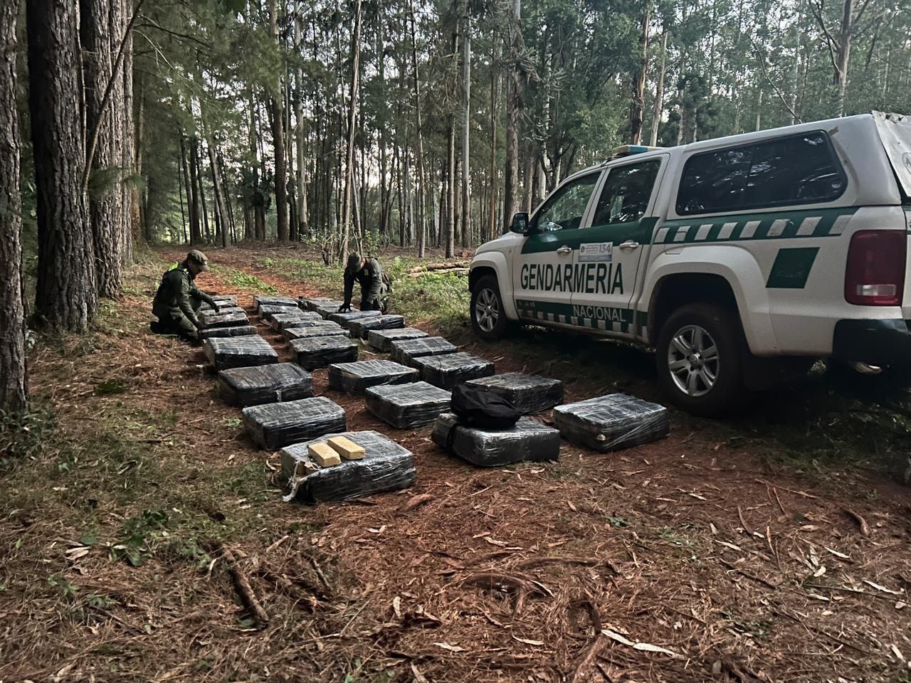 A raíz de este hecho, los gendarmes iniciaron un rastrillaje en la zona y lograron detectar, ocultos entre la vegetación, 30 bultos de grandes dimensiones, junto a una mochila, dos equipos de radio (handys) y una cinta de embalar. Por orden de la Fiscalía Federal y el Juzgado Federal de Oberá, los funcionarios procedieron a la apertura de los paquetes ante testigos.