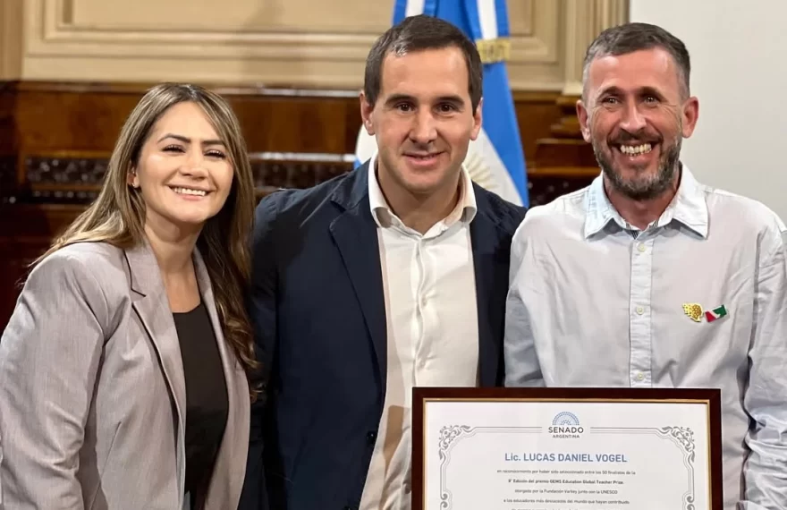 Lucas Vogel, docente de matemáticas oriundo de Oberá, Misiones, fue reconocido por la cámara alta del Senado de la Nación con un diploma de honor. El galardón se suma a su destacada trayectoria educativa, que incluye haber sido seleccionado entre los 50 finalistas del GEMS Education Global Teacher Prize, un premio internacional que valora la excelencia docente.