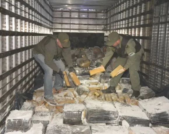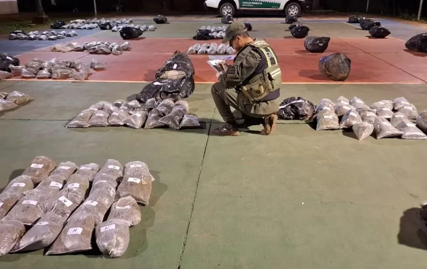 Debido a la gran cantidad de bolsas de consorcio, por orden del Juzgado Federal de Eldorado, se realizó el traslado de la carga hallada hasta las instalaciones del Escuadrón 10. Una vez en el establecimiento de la Fuerza, en presencia de testigos, los funcionarios contabilizaron 38 bultos con un peso total de 503 kilos 3 gramos, detallaron fuentes oficiales de la fuerza federal.