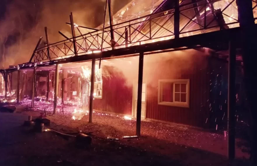 En la madrugada de este jueves, cerca de las 04:30 horas, se desató un incendio en el complejo turístico ubicado en la costa del Río Uruguay, en el paraje 11 Vueltas de Mojón Grande. Las llamas se propagaron con rapidez y consumieron por completo la estructura de un salón de 30 por 12 metros y diez cabañas, siete en planta alta y tres en planta baja construidas en madera con techos de zinc.