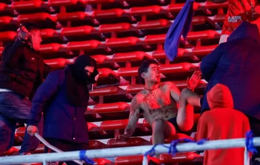 En este marco, ingresaron al sector de los visitantes cerca de 100 barrabravas de Independiente para ir al choque con los hinchas rivales que permanecieron en el lugar. Los locales acorralaron contra la esquina de la tribuna al grupo de los pocos chilenos que quedaba y empezó a golpearlos brutalmente con palos y a desnudarlos. Tal fue la violencia del cruce que hubo personas que saltaron desde el sector alto del estadio.