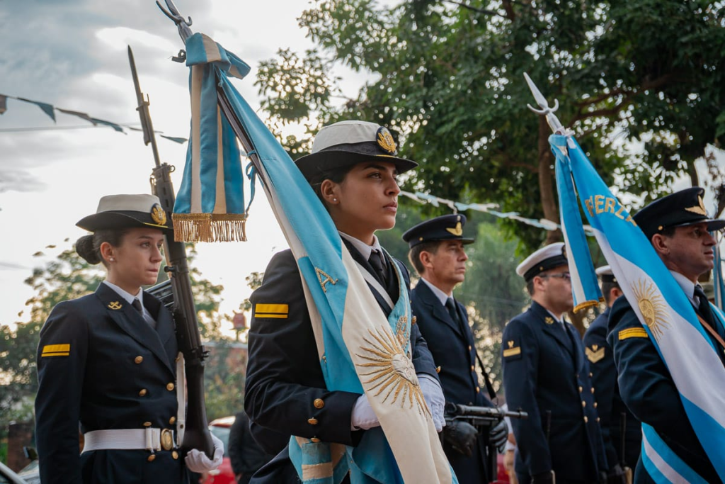 Además del centenar de vecinos que se acercaron a compartir el acto patrio, también estuvieron los abanderados y escoltas de la Agrupación 25 de Mayo, representantes del Comando de la XII Brigada de Monte, del Liceo Naval Militar Almirante Storni, de la Escuela N° 356, y de la Escuela Especial N° 4.