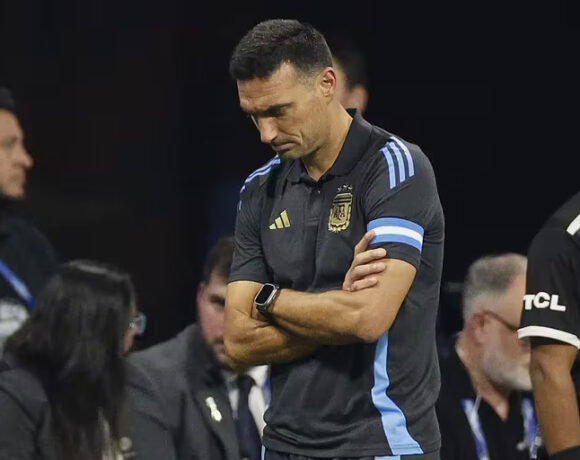 Conmebol sancionó con un partido a Lionel Scaloni: no podrá dirigir a la selección argentina ante Perú Sorpresa en la selección argentina: Lionel Scaloni recibió una suspensión de un partido por salir tarde al campo de juego en el entretiempo del triunfo sobre Chile por 1-0 en el Metlife Stadium correspondiente a la segunda fecha y no podrá estar en el banco de suplentes durante el cruce de este sábado desde las 21 (hora argentina) ante Perú que cerrará la primera etapa en...Leer más