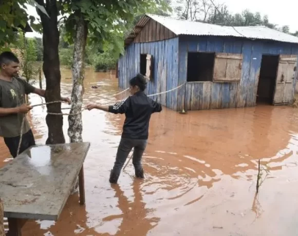 Las intensas lluvias que superaron los 100 mm en pocos días dejaron anegados los campos del Paraje Carandaity, entre los departamentos de General Paz y San Miguel (Corrientes). Como consecuencia, los pequeños productores se vieron obligados a trasladar vacas y búfalos al terraplén de la Ruta provincial N° 5, en un intento por mantener a sus animales fuera del agua.