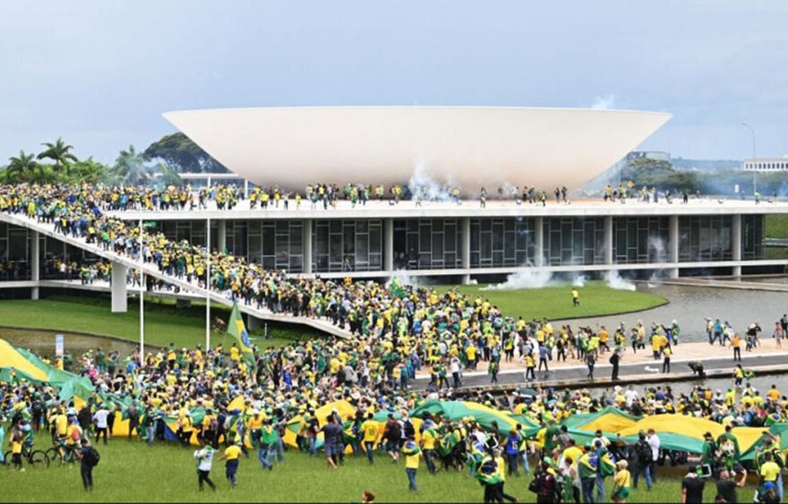 Con nula seguridad de la policía de la capital brasileña, apenas una barrera policial, los radicales de extrema derecha, seguidores de Bolsonaro, destrozaron vallas de seguridad e invadieron la explanada del recinto donde se encuentran los edificios del Senado y la Cámara de Diputados, incluso muchos se subieron a la terraza y otros tantos ingresaron al interior para provocar destrozos.