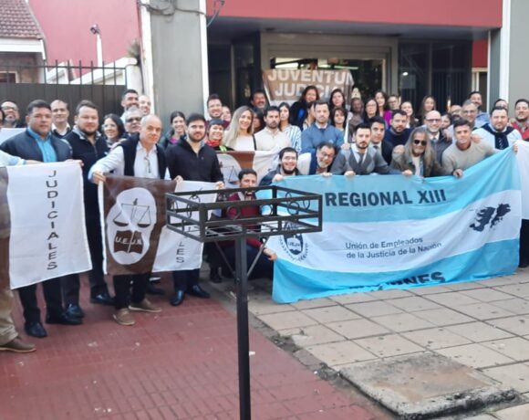Judiciales nacionales comienzan medidas de fuerza en reclamo por pago de un tramo de recomposición salarial Los trabajadores nucleados en la Unión de Empleados de la Justicia de la Nación (UEJN), que lidera Julio Piumato, realizan este miércoles una asamblea como primer paso de un plan de lucha para conseguir el pago del segundo tramo de recomposición salarial que se extiende de abril a junio. Si en el transcurso de esta semana no obtienen respuestas de...Leer más
