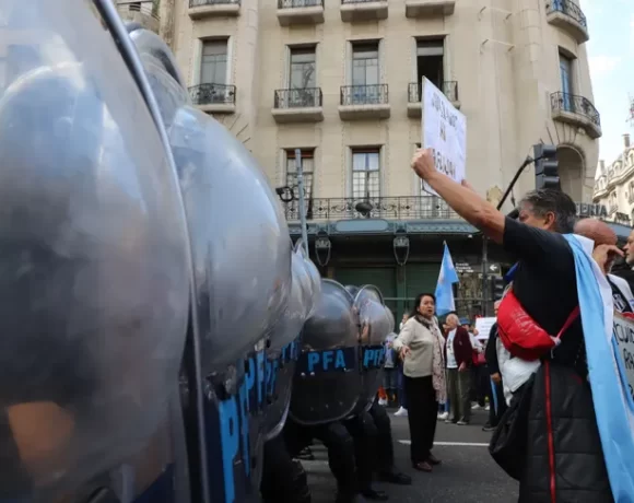 Incidentes, gases, represión y destrozos en la marcha de jubilados e hinchas Un fuerte operativo de seguridad ordenado por la ministra Patricia Bullrich reprimió a los hinchas de distintos equipos de fútbol que se concentraron frente al Congreso para acompañar a los jubilados en una nueva marcha donde reclamaron por aumentos. Ahora marchan hacia la Casa Rosada. Hay al menos catorce detenidos. Alrededor de las 16, las fuerzas de seguridad avanzaron sobre...Leer más