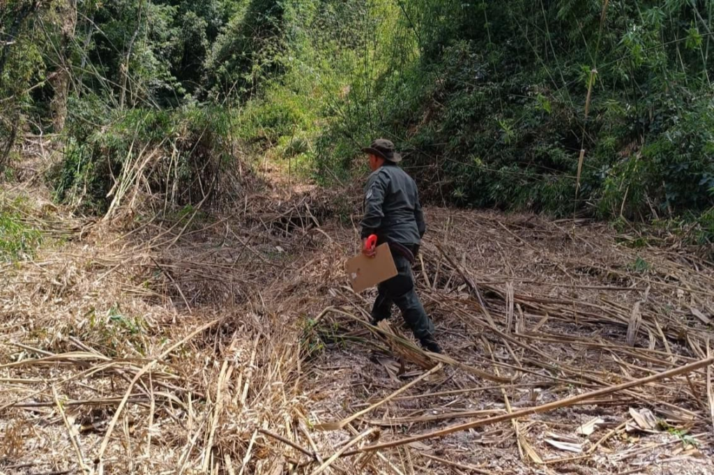 Se hizo un relevamiento en el sector donde se produjo el apeo ilegal. Allí, se encontraron los rastros de una motoarrastradora utilizada para el transporte de los rollos. Las huellas conducían a un lote lindante, de propiedad privada. Un rastrillaje en el lugar, siguiendo las marcas, permitió a los investigadores encontrar oculta en el monte una máquina Caterpillar CAT 518 amarillo, trasladada y depositada en la comisaría de Tobuna.