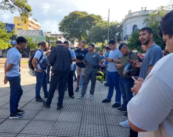 Tras la golpiza dada por empresario, motodeliverys cortaron la avenida Uruguay en forma de protesta Los ánimos tras el violento episodio que le tocó vivir el lunes a la noche al motodelivery Santiago Lafuente están al rojo vivo en Posadas. Este jueves por la tarde, un grupo autoconvocado de compañeros de profesión de la víctima se congregó ante el negocio de Santiago Pissani, sobre la calle Barrufaldi, para reclamar más seguridad para el sector y...Leer más