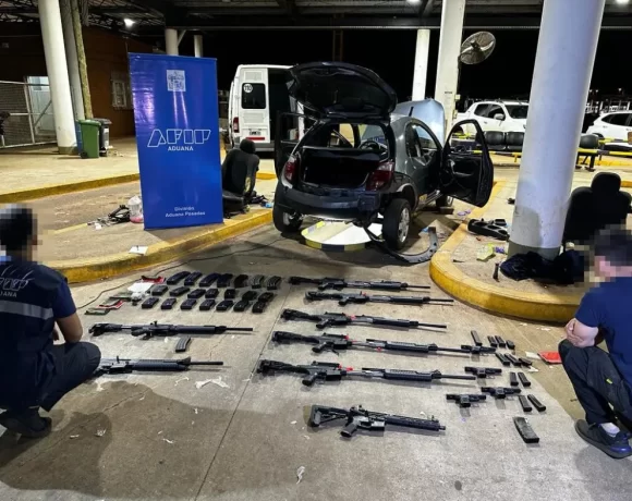 Misionero fue apresado al tratar de entrar al país con 12 armas de guerra Un misionero intentó ingresar al país a través del puente internacional San Roque González de Santa Cruz con 12 armas de guerra de origen extranjero, que estaban escondidas en un doble fondo de su automóvil. Se cree que llevaba la carga a Brasil. El procedimiento fue realizado en la madrugada del domingo por personal de la Dirección General de Aduana....Leer más