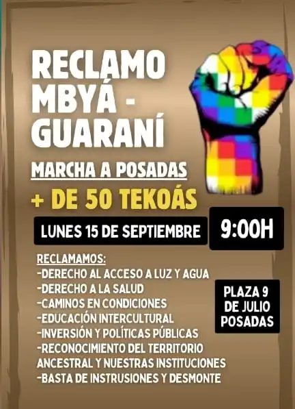 Al menos 65 comunidades indígenas guaraníes de Misiones se preparan para una movilización en la Plaza 9 de Julio de Posadas, a partir del próximo lunes 15 de septiembre. La medida de fuerza, anticipada por Ricardo Benítez, cacique de la comunidad Tuna’i en Puerto Leoni, tiene como principal objetivo conseguir una reunión con el gobernador de la provincia, Hugo Passalacqua para discutir y avanzar en mejoras claves para sus territorios.