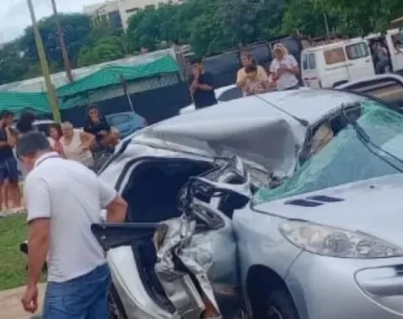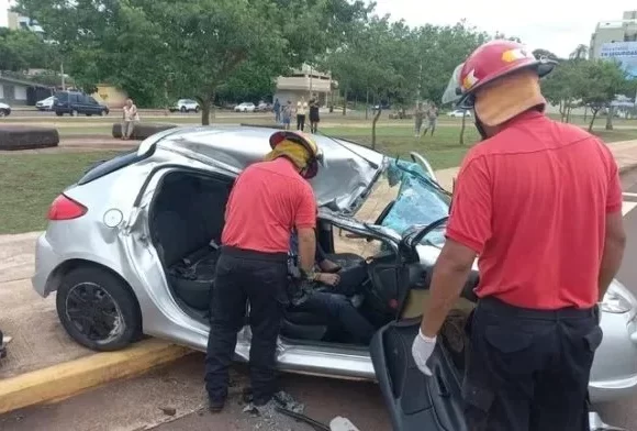 El accidente sucedió en la intersección de las avenidas Costanera y Comodoro Rivadavia, donde el automóvil impactó contra otro vehículo estacionado, dejando atrapados a los ocupantes del primer rodado.