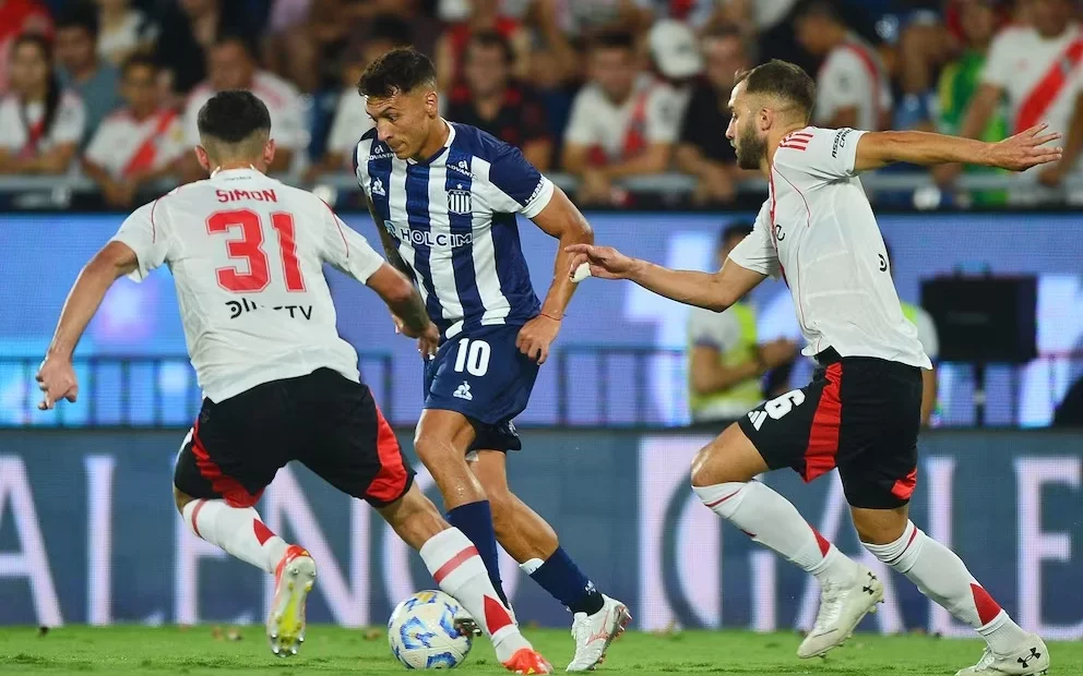 El encuentro comenzó con mucha intensidad, especialmente en el primer tiempo, pero con pocas llegadas claras a los arcos. Aunque River tuvo mayor posesión de la pelota, fue Talleres quien más inquietó en el área contraria, aunque sin generar demasiado peligro. Ambos equipos intentaron con disparos desde fuera del área, pero la ocasión más clara llegó sobre el final de la primera mitad, cuando Federico Girotti, tras un centro desde la izquierda, cabeceó por encima del travesaño.