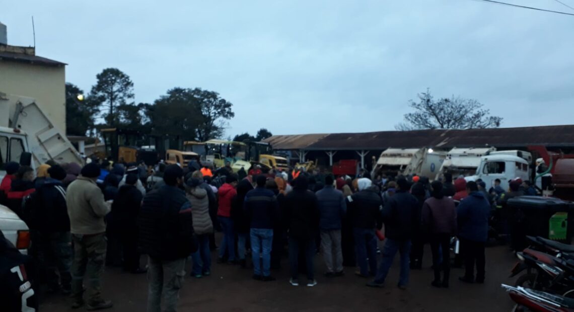 Trabajadores municipales de Eldorado hacen una asamblea frente al corralón reclamando aumentos y pases a planta