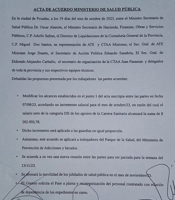 Trabajadores sanitarios acordaron piso salarial superior a $262 mil con gobierno misionero