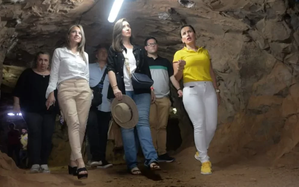 En el establecimiento Compañía Minera, la jefa comunal recibió a la vicemandataria nacional y junto al viceintendente Luis Sáenz y parte del gabinete municipal, hicieron un recorrido por los túneles para ver las piedras en su estado natural y escucharon las explicaciones sobre cómo es el proceso desde su extracción hasta la comercialización de las piedras ya convertidas en hermosas alhajas y otro tipo de productos.