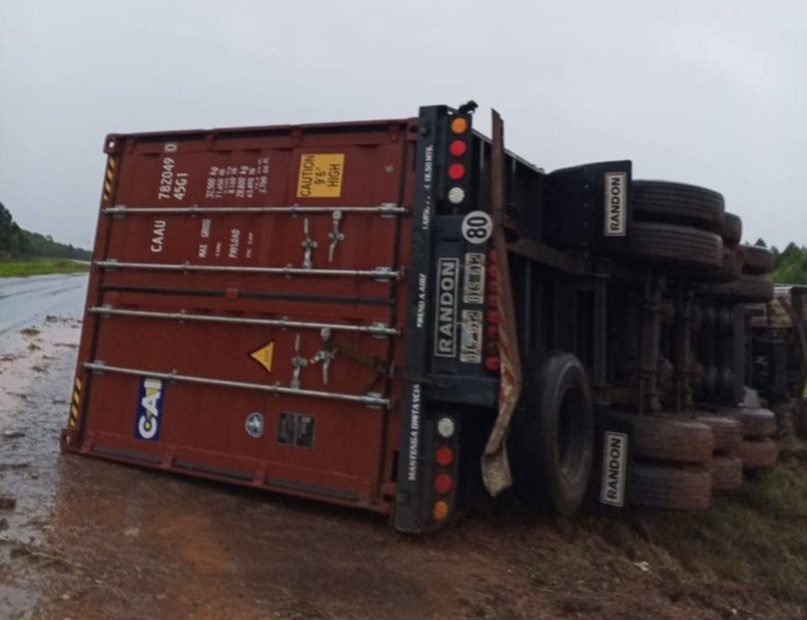 Un camión despistó y volcó el martes en la autovía de la Ruta Nacional 14, localidad de Amado Bonpland en Corrientes