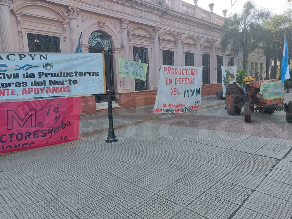 Con el tractor y carteles, los productores hacen notar su presencia para pedir por la continuidad del instituto que regula la yerba mate. Es que el Gobierno nacional le quitó las facultades de fijar los valores de la materia prima y lo limitó a ser un simple ente de promoción.