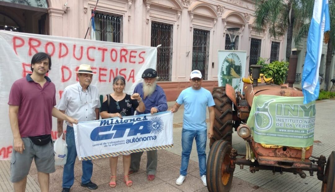 Esta mañana distintas asociaciones de yerbateros se dirigieron hasta Posadas y trajeron un tractor -como iniciativa simbólica- para sentar su postura de lucha contra la eliminación del Instituto Nacional de la Yerba Mate (INYM).